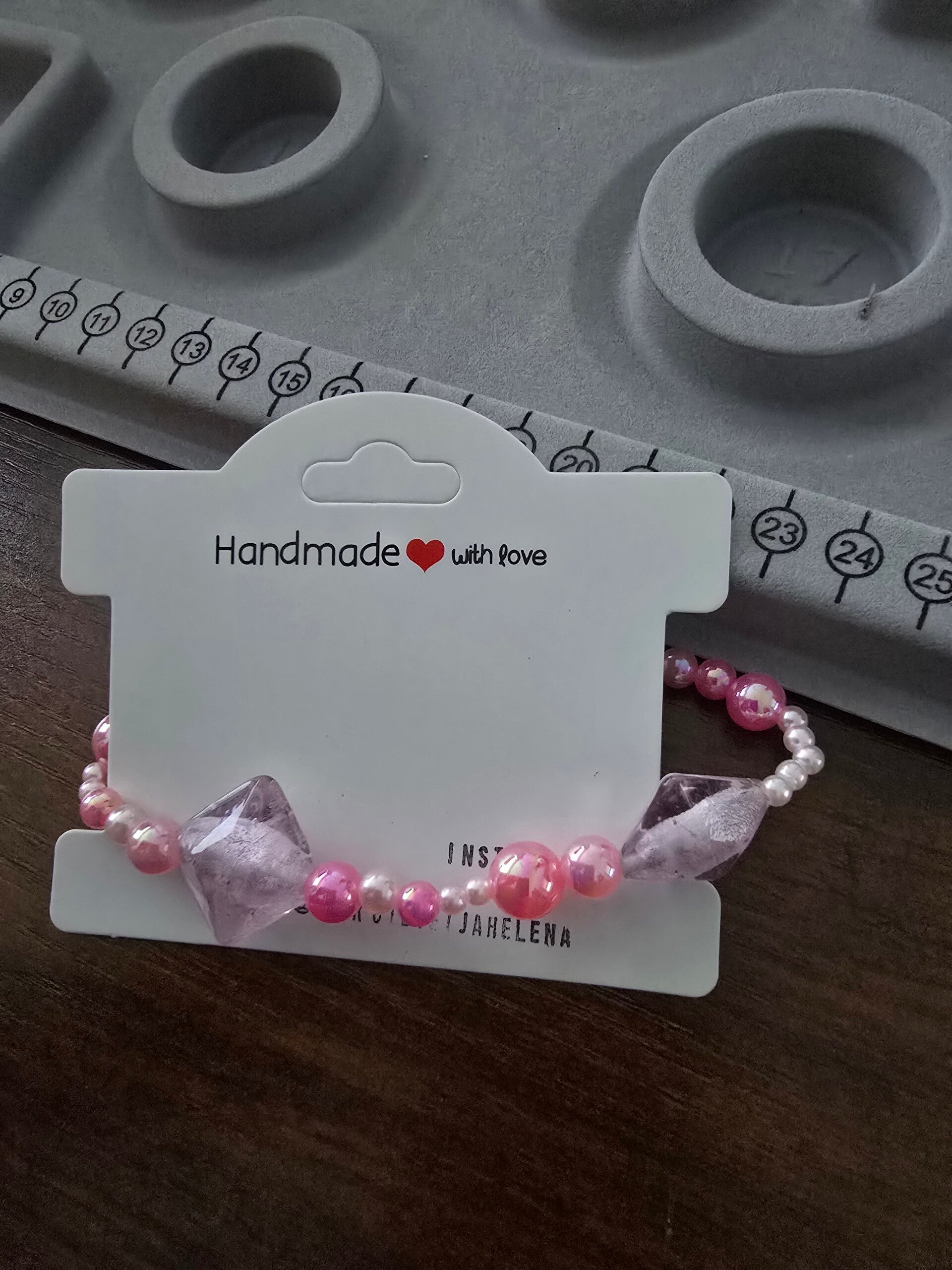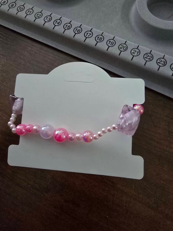 Erivärisiä pinkkejä helmiä. Koko 18 cm
